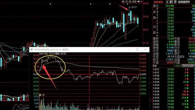 反之,看下图像王府井,这种当日冲高回落后,第二天接着大跌,使前一天冲高回落的资金白白浪费掉,第三天仅是小涨,第四天又是下跌。黄色圆圈中的那天冲高的资金努力彻底付之东流。