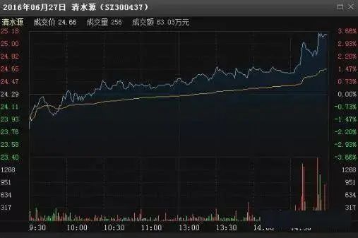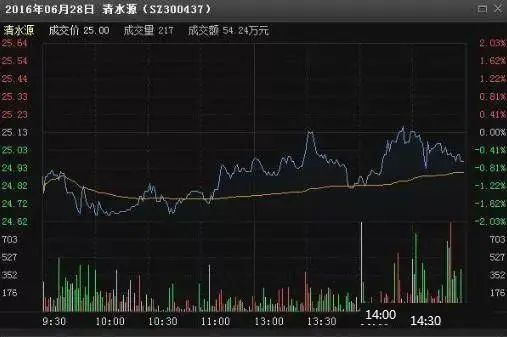 从6月27日清水源的分时图可以看出,在毫无征兆的情况下,14:30出现放量拉升,14:52再冲一波,尾盘以接近最高位报收,一副有资金进场抢筹的样子。但你再看它6月28日的分时图,集合竞价出来就跌了1%。如果真的强势,往往开盘就直接跳空逼你追了: