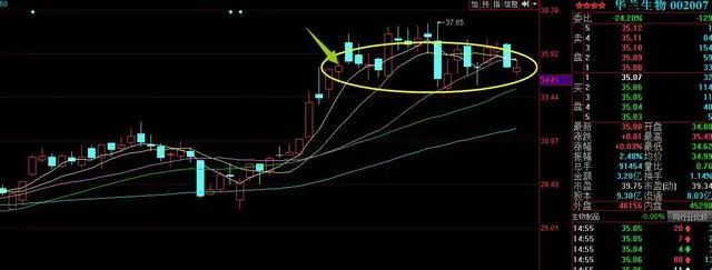看下图,华兰生物在绿箭头所指那天的早盘低开后的18个交易的走势(黄色圆中)都是整体的调整走势。